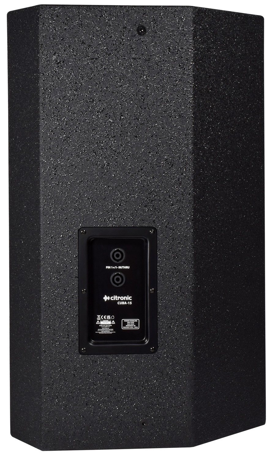 Premium full-range passive speaker cabinets with a polyurea coated wooden enclosure and powder-coated steel grille. A high power-handling main driver and efficient titanium diaphragm HF compression driver combine with the tuned enclosure to deliver a balanced output of all frequencies. The rear panel has either 2 x Speakon or a single Speakon with 4mm binding posts (depending upon model), enabling linking onto additional speakers. Each cabinet has 2 side handles and a 35mm pole-mount socket for stand mounting. The rear of the cabinet has 2 different bevels for angled placement at ground level or for suspended arraying, multiple M8 flying points are inset on each cabinet. Recommended for use with Citronic PLX, D and H-series amplifiers for a wide range of professional high power sound reinforcement situations.