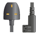 UK 3 pin plug to right angle IEC C13 female plug, 3 core mains power lead, suitable for connecting power to general electronic equipment of up to 2300W.