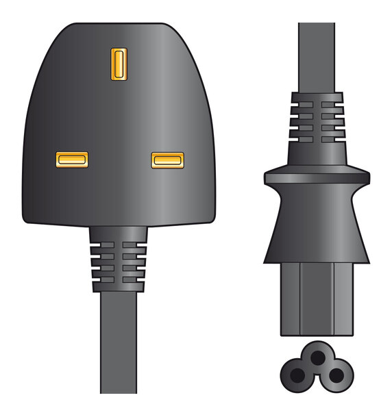 UK 3 pin plug to clover leaf plug, 3 core mains power lead, suitable for connecting power to small electronic equipment of up to 575W. more
