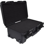 19" rack case in a padded bag with front and rear flaps for access and ventilation. Equipment is protected by an inner wooden frame and secured by metal rack strip front and rear. Also fitted with… more