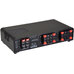 4-way switcher unit that allows the distribution of a stereo amplifier. Simply connect the output of an amplifier to the selector box, this output can then be distributed to up to four different stereo speaker sets in multiple locations, each speaker set can be individually activated via the push buttons on the front of the unit. Ideally suited for buildings where an independent sound control is required for different rooms or zones.