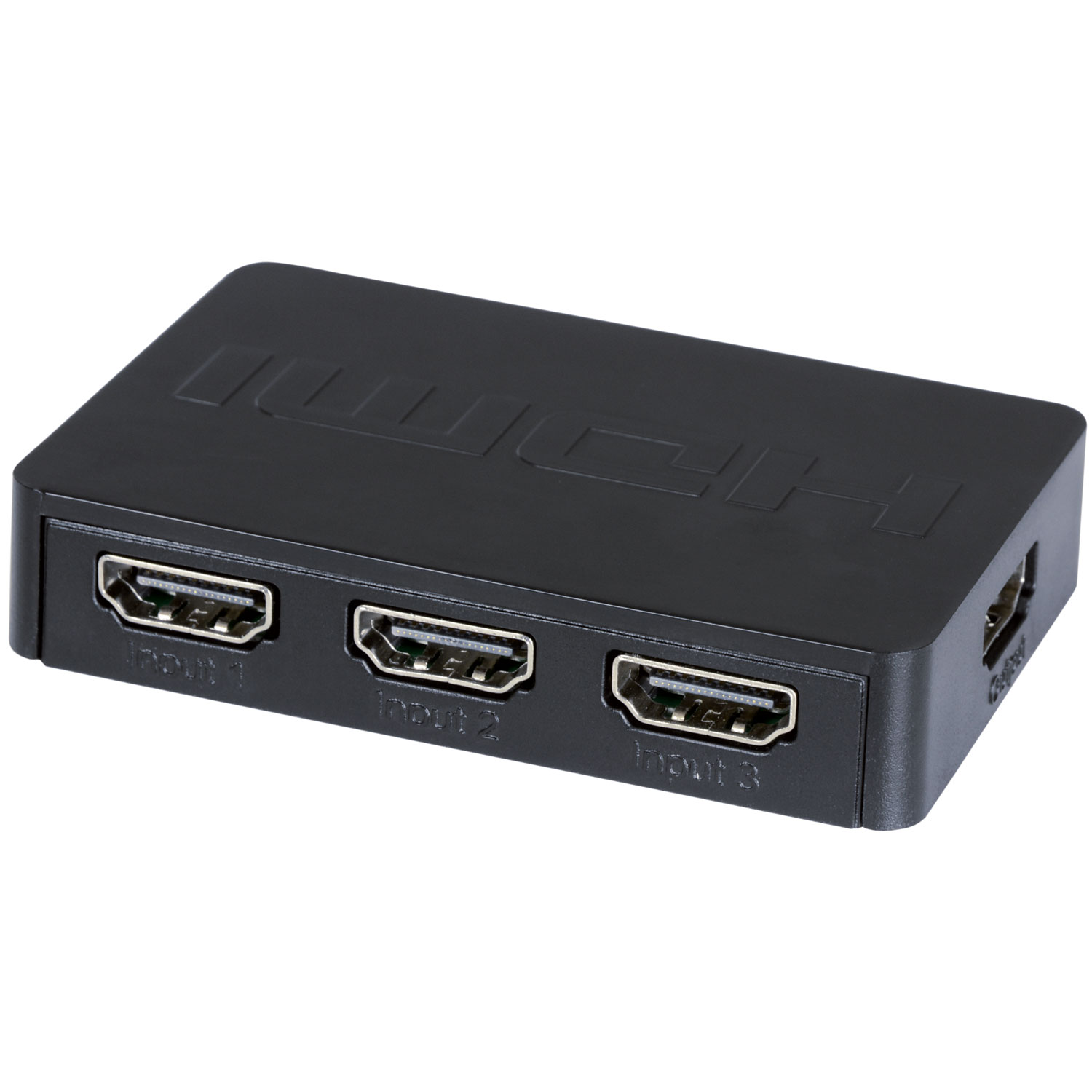 This mini HDMI switch allows a single display to be connected to up to 3 HDMI sources and selected using the IR remote control or selection button on the unit. Front LEDs keep you informed as to which of the inputs is live at any one time.