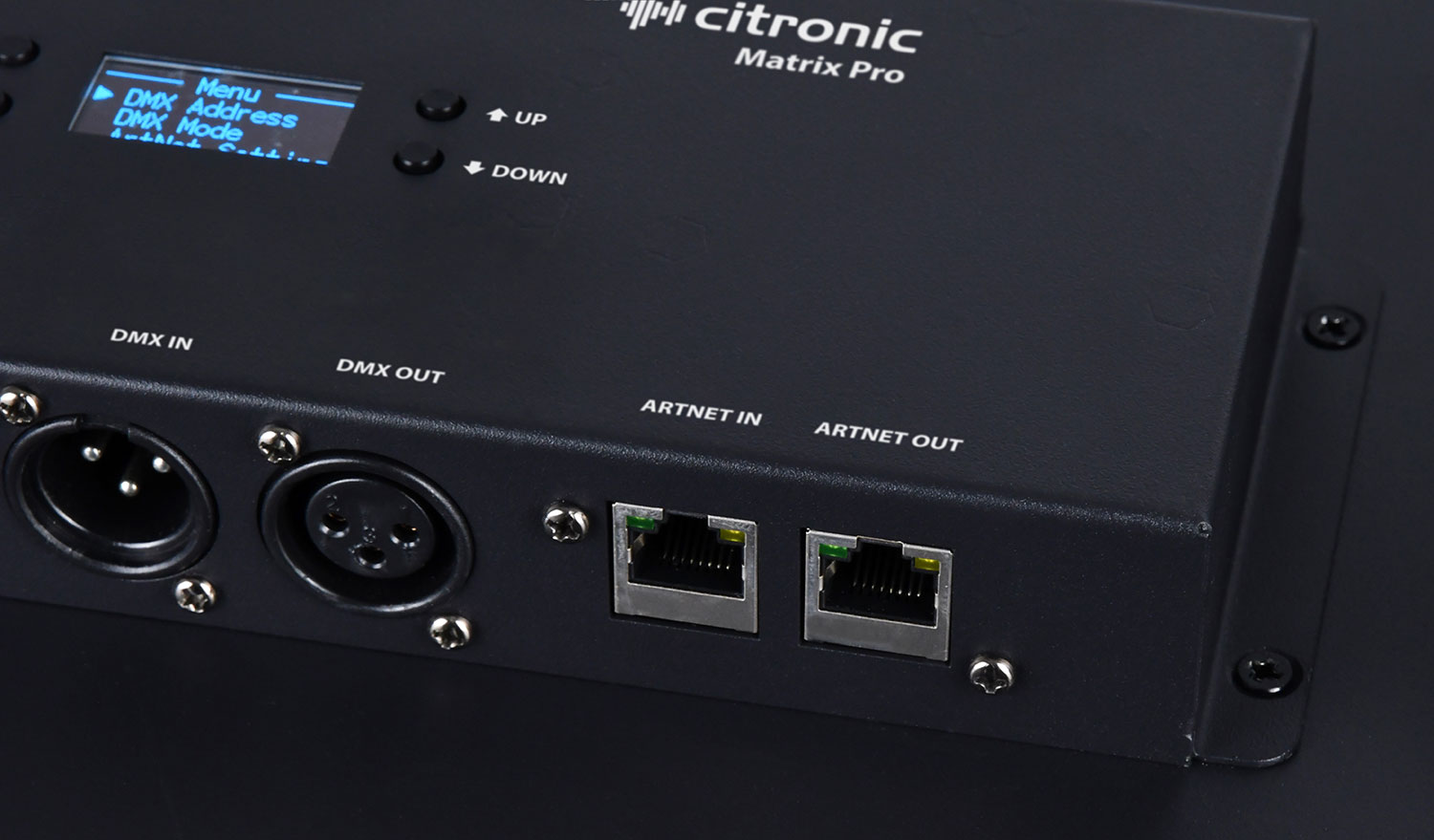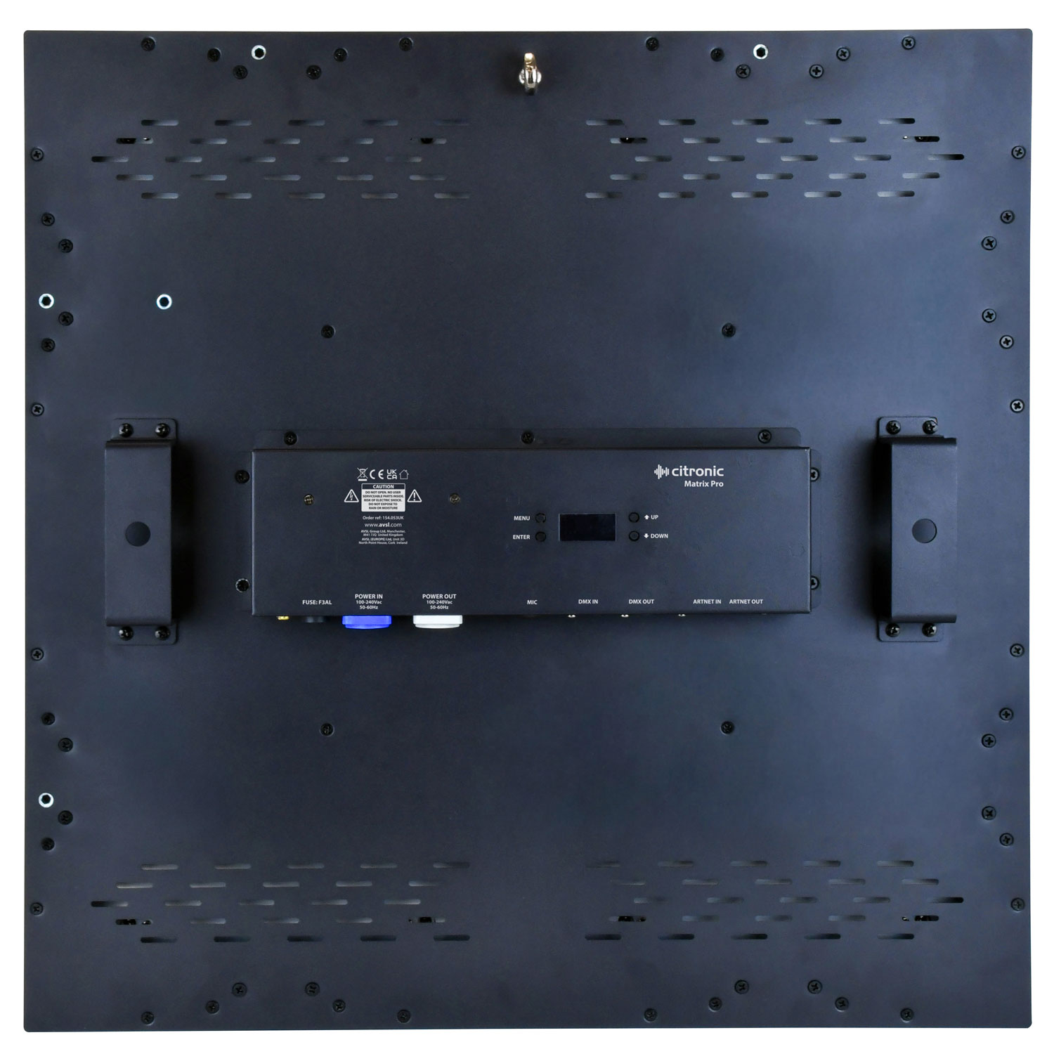 Powered by 500pcs of high output SMDs, the Citronic Matrix Pro can produce a vast array of colourful moving effects and washes. Internal auto, sound activated, and static programs can easily be controlled by the digital control panel on the back of the unit, alternatively the Matrix Pro can be operated remotely by Art-Net or DMX in either 3, 5, 20 or 300 channel modes if required. Intelligent fan control and temperature protection keep the unit cool during longer operations and twist and lock power connections complete the professional outlook. The Matrix Pro can be mounted on trussing in any direction using the provided quick release fixing clamps. Integrated connections on all 4 sides also allow the fixture to be quickly connected to multiple units producing an amazing wall of brilliant colors, ideal for stage backgrounds and larger events.