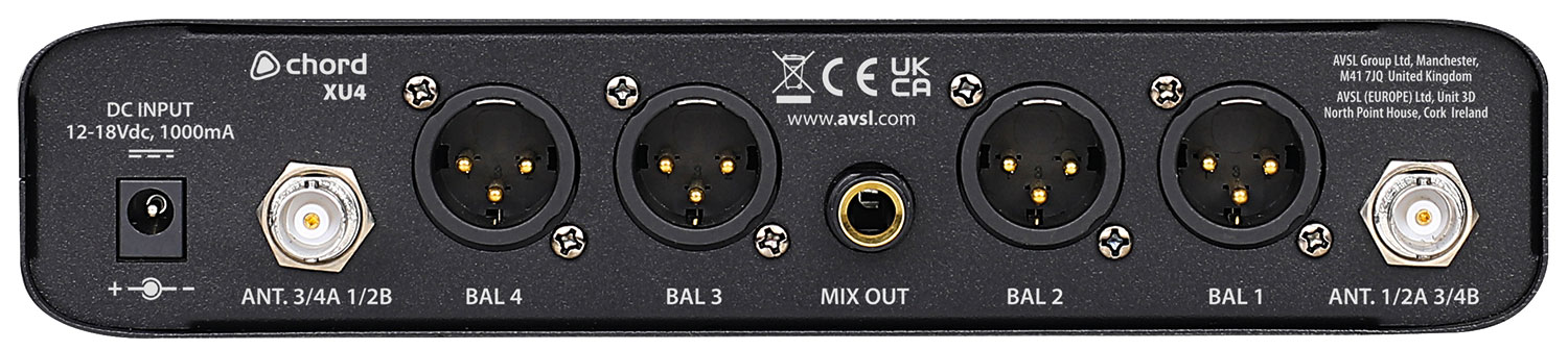 - 1, 2 or 4 x XLR outputs + 1 x 6.3mm mix output