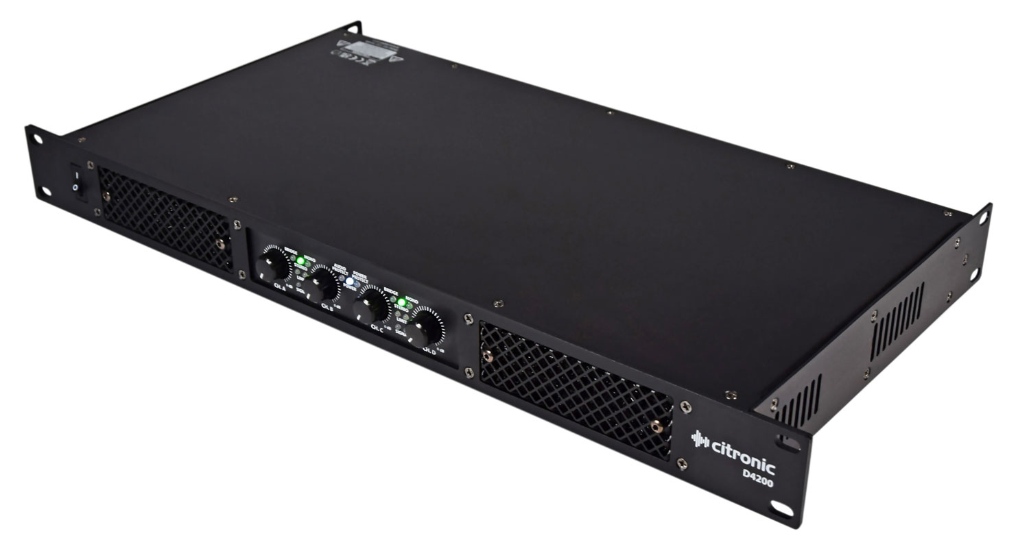 Quad digital power amplifier in a lightweight 1U rack-mountable format. An energy-efficient switch-mode power section and class-D amplifiication circuit delivers accurate power-on-demand to four independent speaker outputs. Proprietary cool guide technology provides stable temperature management for dependable operation. Each pair of output channels can be separately parallel switched or bridged as a full or part stereo amplifier configuration. For channel A, there is a switchable 120Hz low-pass filter for use with subwoofers and a channels C and D have a switchable stereo pair of 120Hz high pass filters to effectively focus power in full-range cabs operating as mid-tops in conjunction with sub-woofers. For permanent or mobile installations, the D-series offers an invaluable and flexible problem solver for audio designers and sound engineers.