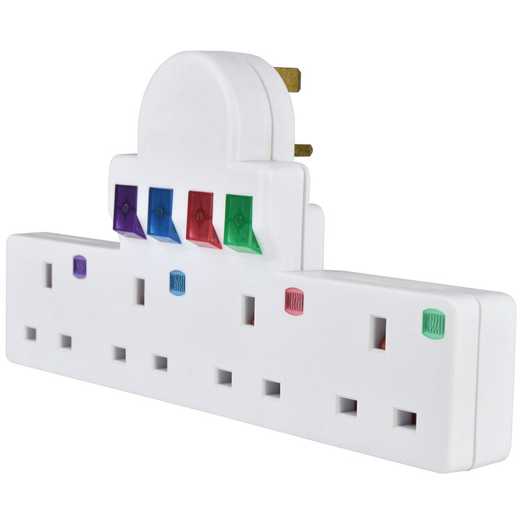 A unique 4-way mains adaptor which simply plugs into an existing 13A mains socket. Ideal for adding extra sockets without having trailing leads. Surge and spike protected more