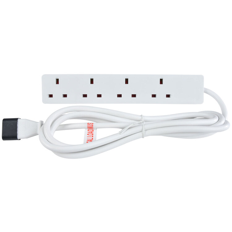 UK Mains 240V 10A IEC to 4 Gang Extension Lead – this cable is fitted with a C14 (Male) on one end and a 4 gang extension on the other.