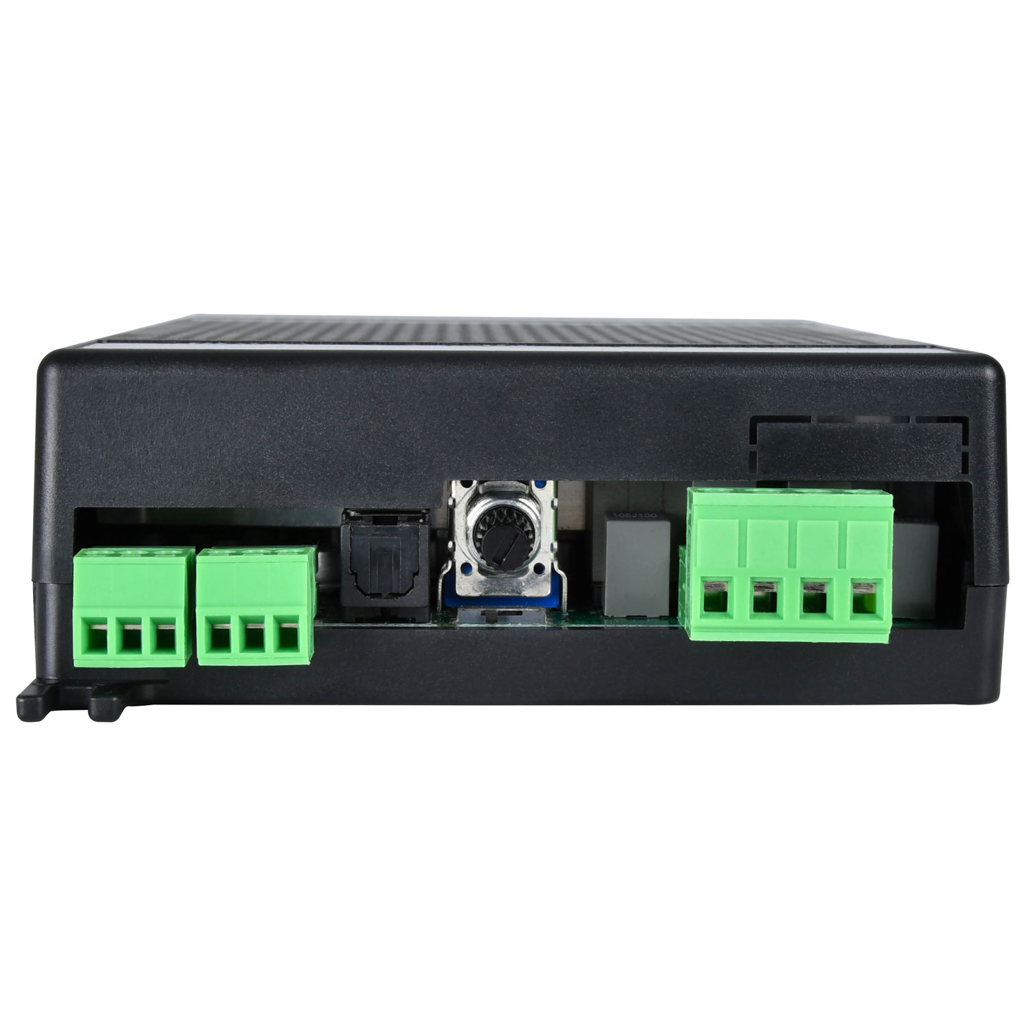 - Speaker outputs L-/L+/R-/R+ screw terminals (Euroblock)