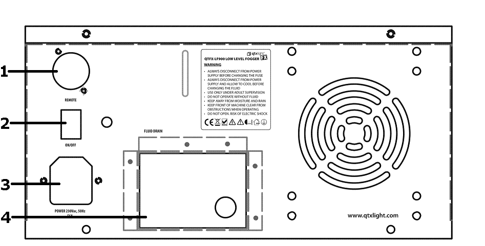 Thank you for choosing the QTFX-LF900 low level fog machine as part of your stage effects setup. This machine is designed to emulate low lying dry ice effects using cooled fog fluid.