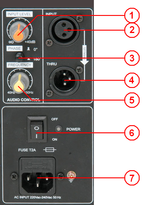 Begin with the FREQUENCY control in the mid position (12-o-clock position) Press the power switch on and gradually increase the INPUT LEVEL until the bass signal is heard through the speaker.