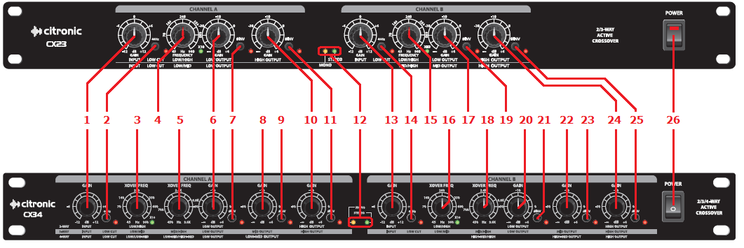 - The CX23 can be configured as a 2-way stereo or 3-way mono crossover