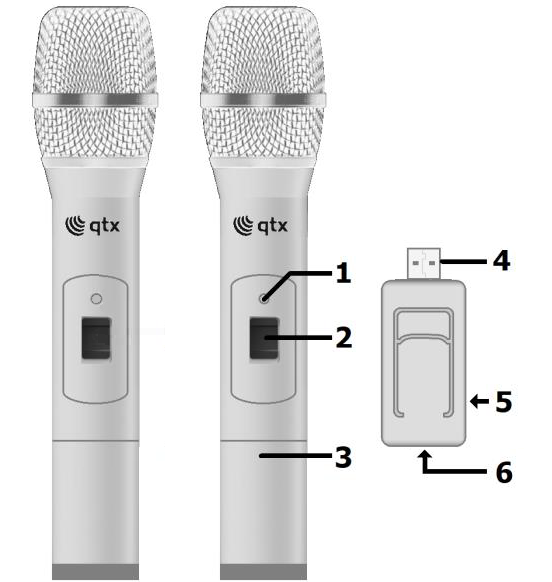 The U-MIC is supplied as 2 individual handheld microphone transmitters and a USB receiver with a 3.5mm to 6.3mm jack lead.