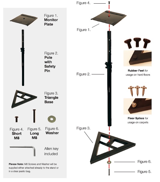 This robust monitor speaker stand is an ideal solution for studio, home or small projects. The stand has a low profile triangular base, is height adjustable with locking pin.