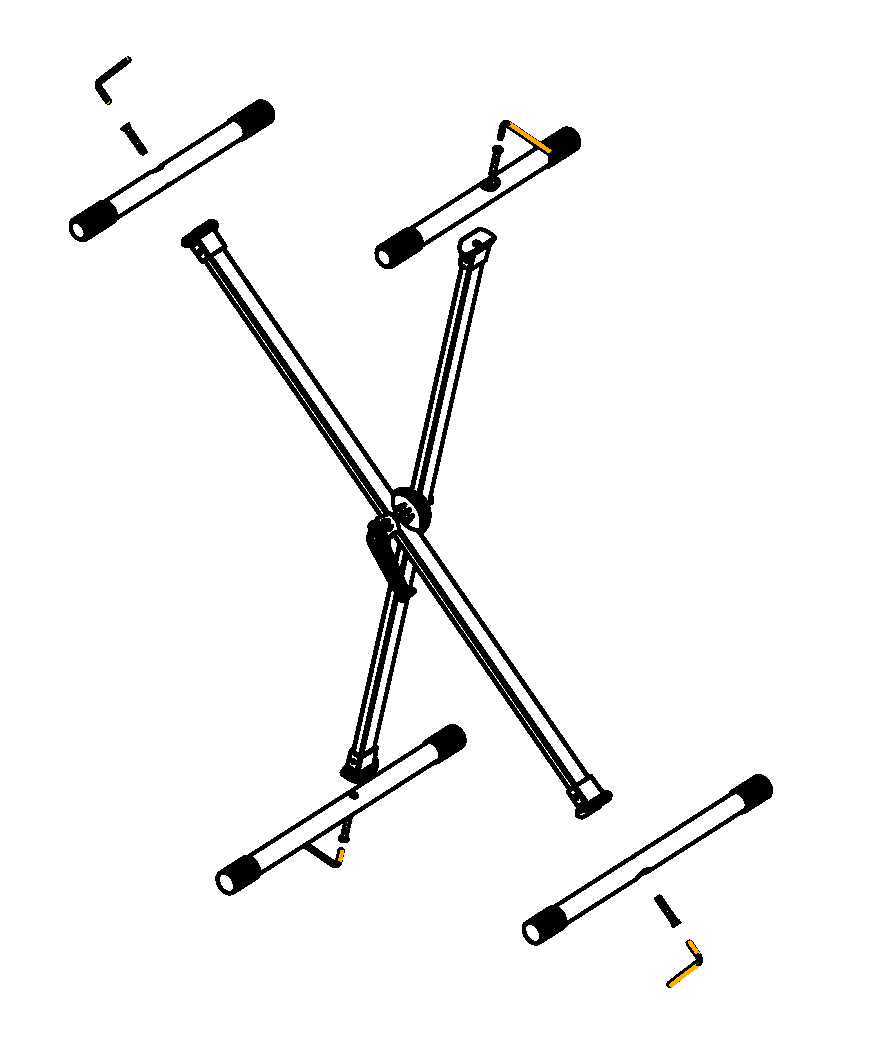 X-braced keyboard stand with textured end caps to aid grip and prevent the keyboard sliding forwards. Pull and lock ball mechanism enables quick setup and secure multi-point positioning.