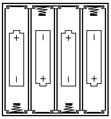 The battery cartridge has contact pads at one end. When the cartridge is fully loaded, these contacts should be located onto the 2 springs inside the battery compartment.