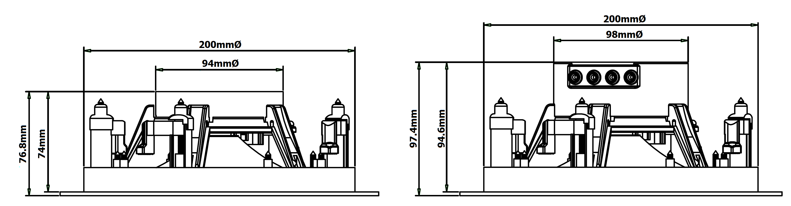 Carefully mark out and cut a hole 202-207mm diameter for each speaker, ensuring that there is enough headroom to accommodate the rear housing of each speaker.
