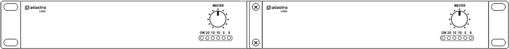 The US series amplifiers can be mounted into a 19” rack cabinet using the supplied rack accessories.