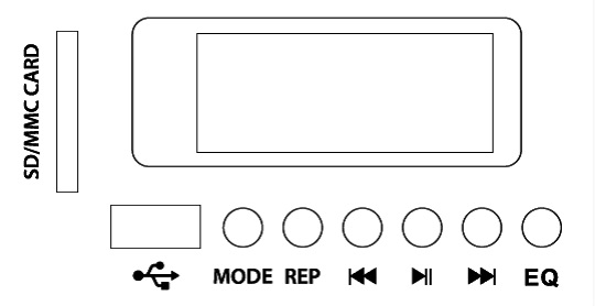 Pressing REP sets the repeat mode: rAN= random, ONE= single track, FOLd= folder, ALL= all tracks