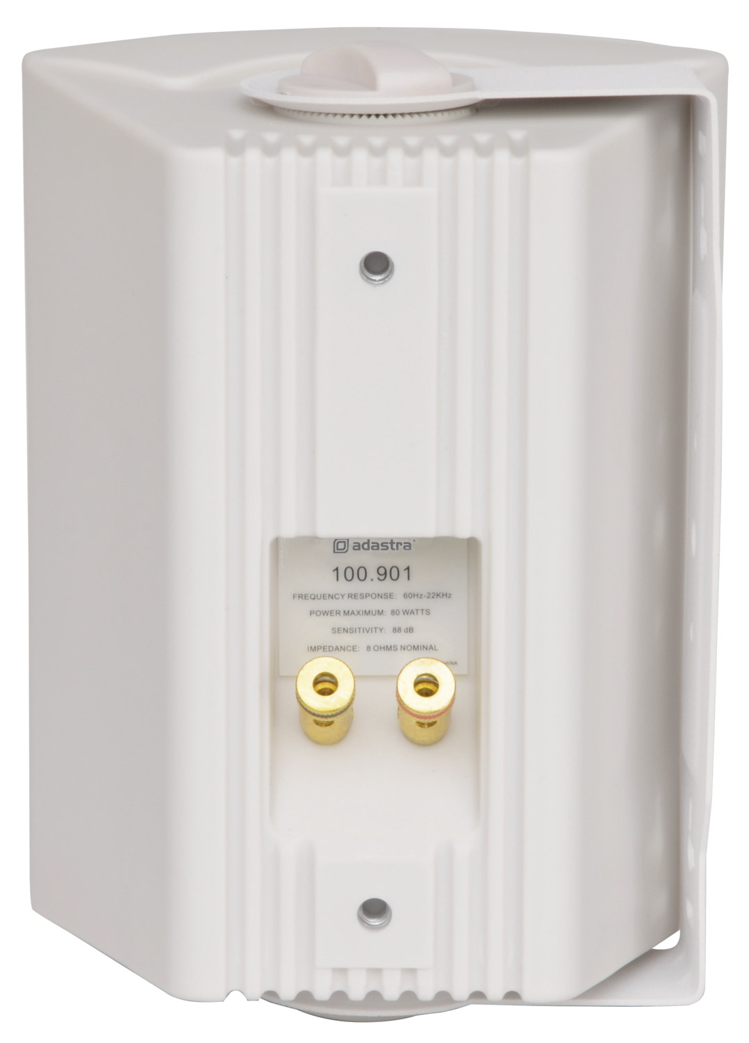 Industry standard indoor speakers with ABS enclosures and a powder coated steel grille. Wall or ceiling surface mounting via the adjustable steel bracket. Each with standard 8 Ohms impedance and supplied in pairs for connection from a stereo amplifier. Main drivers have high quality coated paper cones for full-sounding low and mid-range frequencies, ideal for music playback and clear voice announcements.