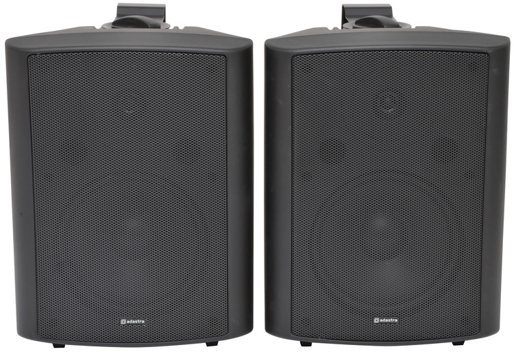 Industry standard indoor speakers with ABS enclosures and a powder coated steel grille. Wall or ceiling surface mounting via the adjustable steel bracket. Each with standard 8 Ohms impedance and supplied in pairs for connection from a stereo amplifier. Main drivers have high quality coated paper cones for full-sounding low and mid-range frequencies, ideal for music playback and clear voice announcements.