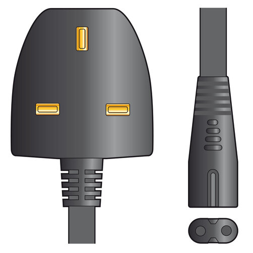 UK 3 pin plug to figure 8, 2 core mains power lead, suitable for connecting power to general electronic equipment up to 575W.