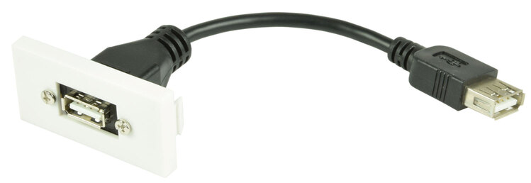 50mm x 25mm clip in module with a USB2.0 type-A socket and female tail to the rear. Ideal for connecting USB peripherals and devices in a different location without the need for trailing wires.… more