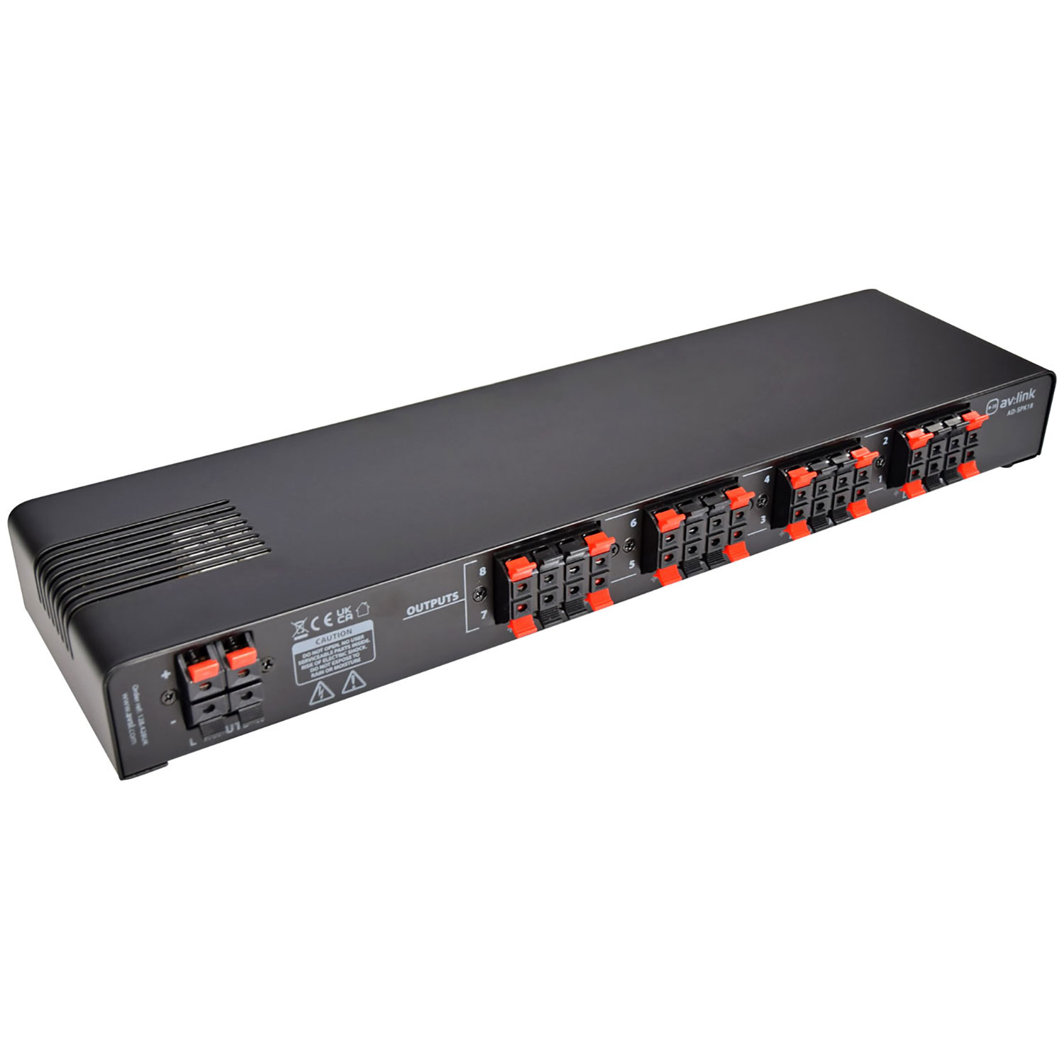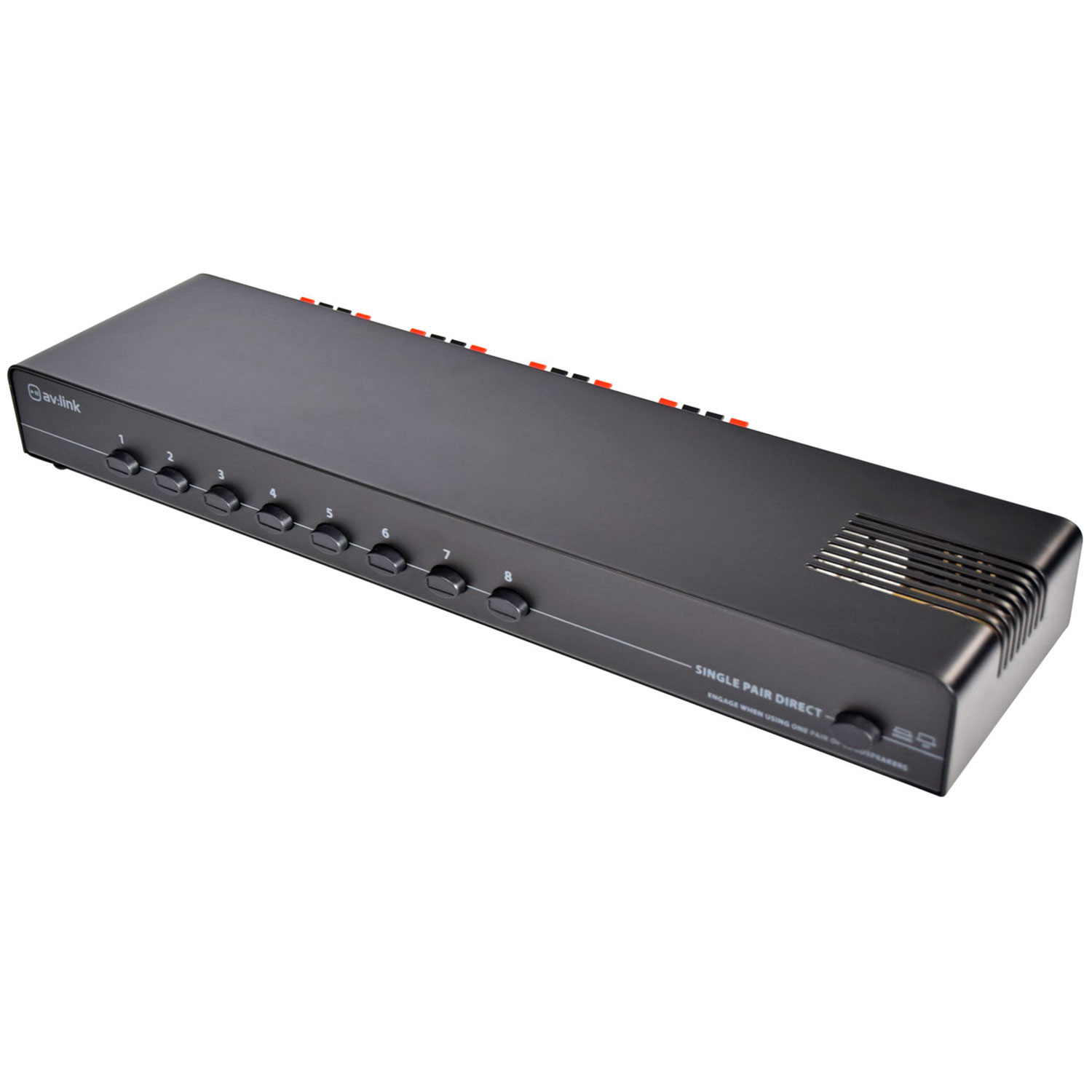 - Enables eight pairs of speakers to be connected to a single stereo amplifier