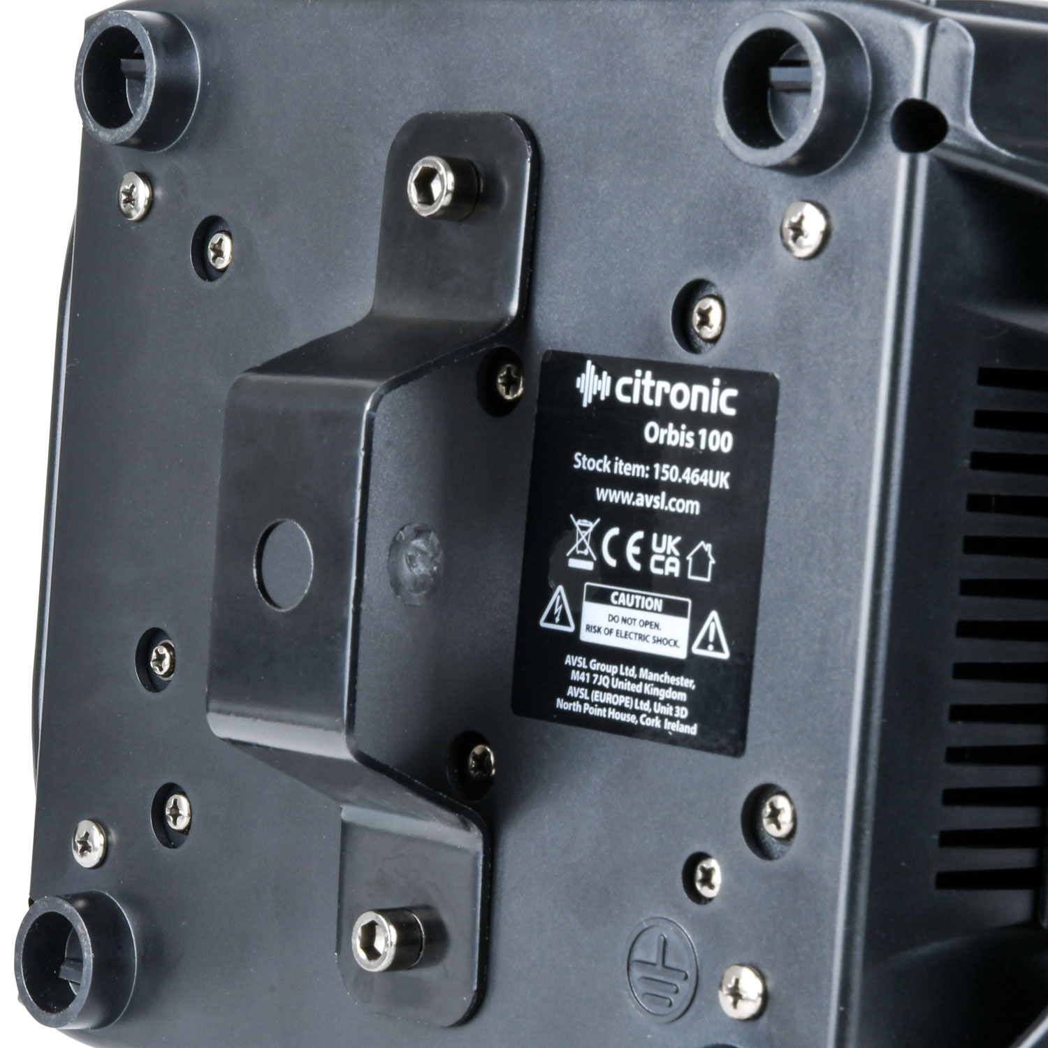 The Citronic Orbis 100 is a feature-packed moving head that combines a powerful 100W LED beam with a vibrant RGB outer ring for stunning visual effects. Offering 11 or 14-channel DMX control, the Orbis 100 can operate in auto, sound-to-light, or DMX modes, making it versatile for any setup. Designed for both freestanding or truss-mounted use (bracket included), it’s ideal for stages, bars, nightclubs, and mobile DJs. Delivering an array of dynamic, colourful effects, the Citronic Orbis 100 is perfect for adding energy and impact to any event or performance.