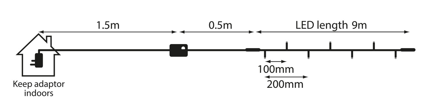 High quality outdoor LED string lights with heavy duty black cable. The 8 pre-programmed sequences, allow you to adjust the mode to your preference via the included controller. You may extend the cable from the mains power supply by using our 5m power extension lead. Each set is connectable and can be extended up to 10 sets for the 90 LED, and 5 for the 180 LED from just one plug. The high quality LEDs have a long lifespan and are energy efficient making them ideal for decorating homes, shops etc.