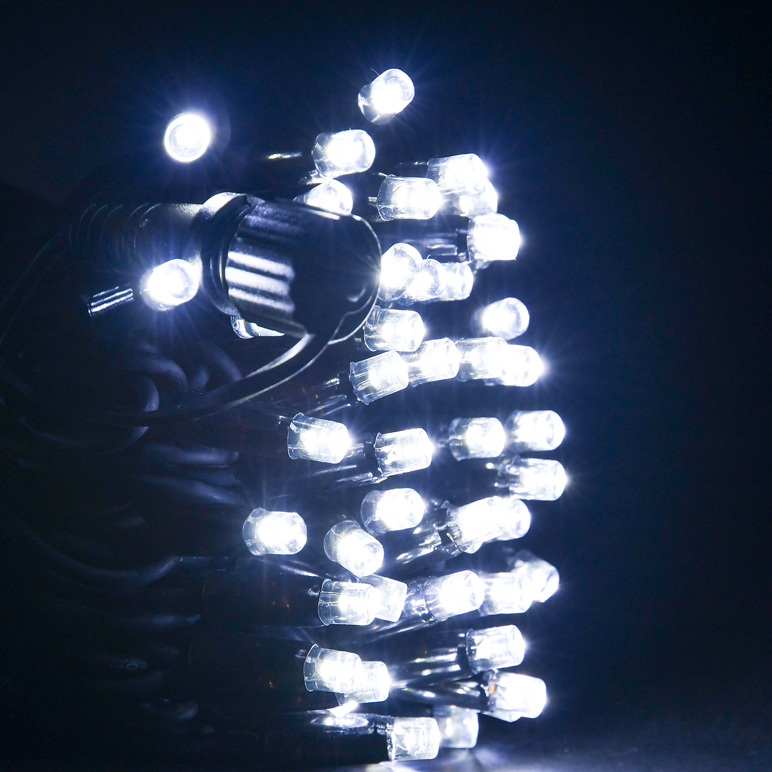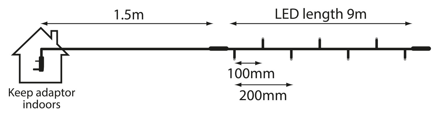 High quality outdoor LED string lights with heavy duty black cable. You may extend the cable from the mains power supply by using our 5m power extension lead. The high quality LEDs have a long lifespan and are energy efficient making them ideal for decorating homes, shops etc.