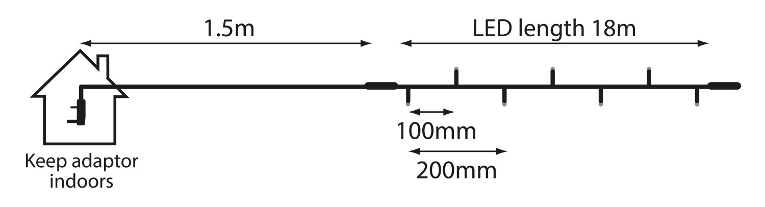 High quality outdoor LED string lights with heavy duty black cable. You may extend the cable from the mains power supply by using our 5m power extension lead. The high quality LEDs have a long lifespan and are energy efficient making them ideal for decorating homes, shops etc.