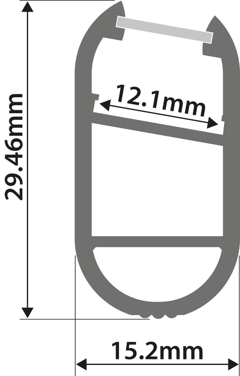 Extruded aluminium profile with oval cross-section and angled slide-in diffuser. Supplied with end cups and suspension hoops to be assembled with LED tape inside as an illuminated clothes rail for installation into wardrobes.