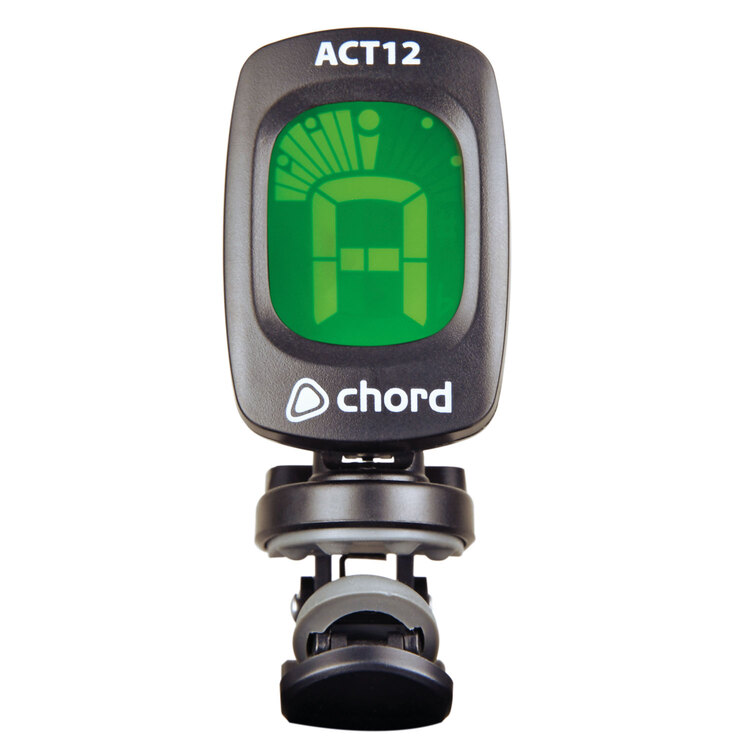 Compact clip tuner with patented auto operation. 4 pressure sensors detect when the tuner is clipped to a surface, such as a guitar headstock, activating the tuner. Removal or inactivity for 5 minutes automatically switches the tuner off. Display is virtual needle type with 3-colour backlight for flat, sharp or in-tune. Accurate and convenient tuning for guitars and other instruments.