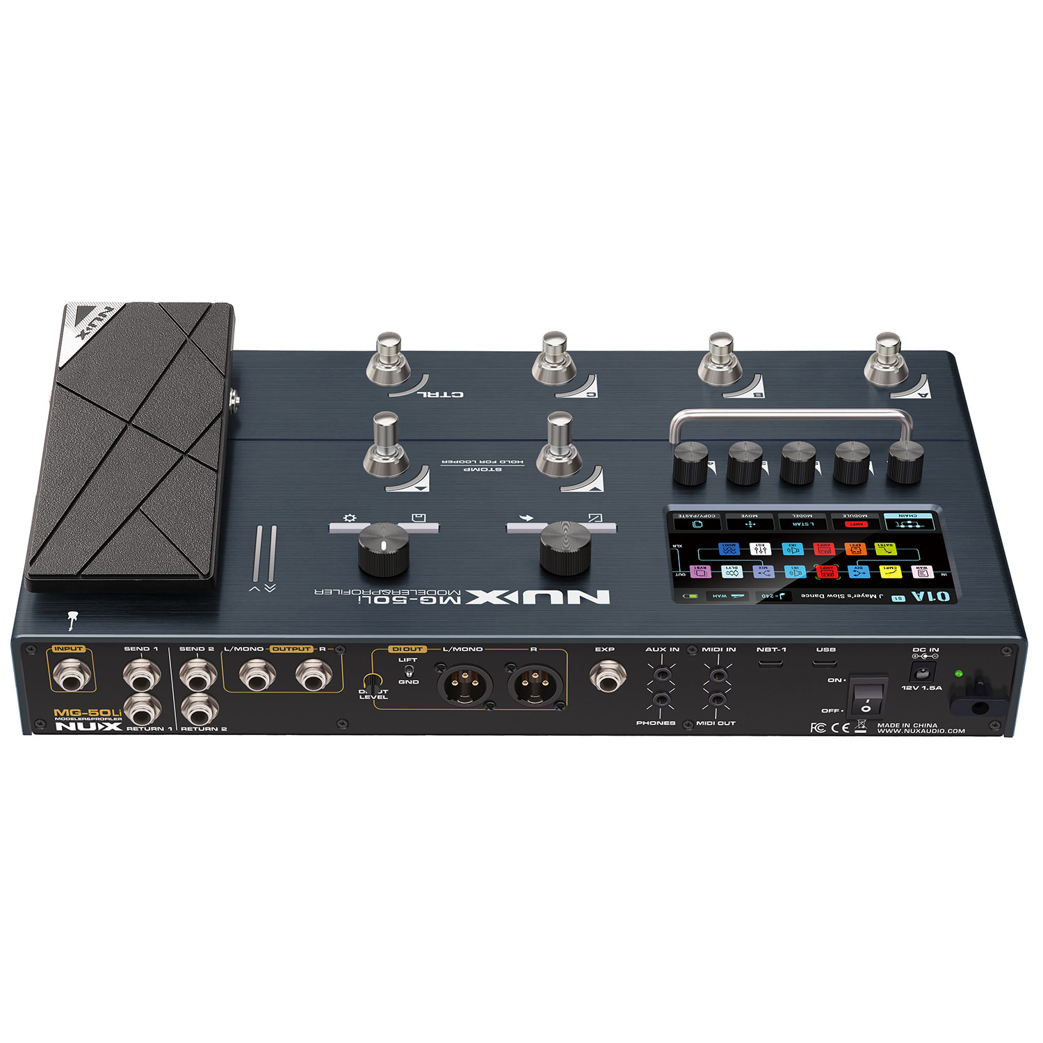 The MG-50Li is NUX family's flagship multi-effects processor for guitar and bass, built around two core technologies: TS/AC-4K white-box physical modelling amps and Deeplmage profiling amp models. Its UR Cyber IR engine provides stereo cabinet emulation with adjustable Microphone, Position, and Distance parameters, giving you detailed control over your sound. Combining up to 14 simultaneous effect blocks with ultra-flexible routing options across the dual-chain, the MG-50Li unlocks an enormous range of tonal possibilities. With the NUX IMAGE app and the Deeplmage technology, you can capture your favourite amps or OD/DIST pedals and store the profiles directly inside the MG-50Li, bringing all of your amps everywhere easily. You can also create incredible sounds via the NUX IMAGE app by combining these captures with different EQ models and power amp tube models. Patches can be edited directly from the front panel or through the NUX Audio app on your phone or computer for customization. Equipped with a high-definition colour LCD display that stays readable even in bright daylight, the MG-50Li provides you with everything you need to dial in your sound and perform with confidence.