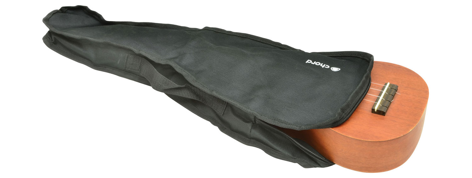 Lightweight gig bag for carrying and storage of soprano ukuleles with zip fastener and carrying handle.