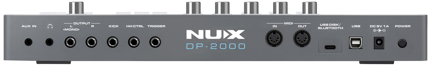 - Inputs Aux input, trigger, hi-hat, kick, MIDI 5-pin DIN, USB-C (U-Disk)