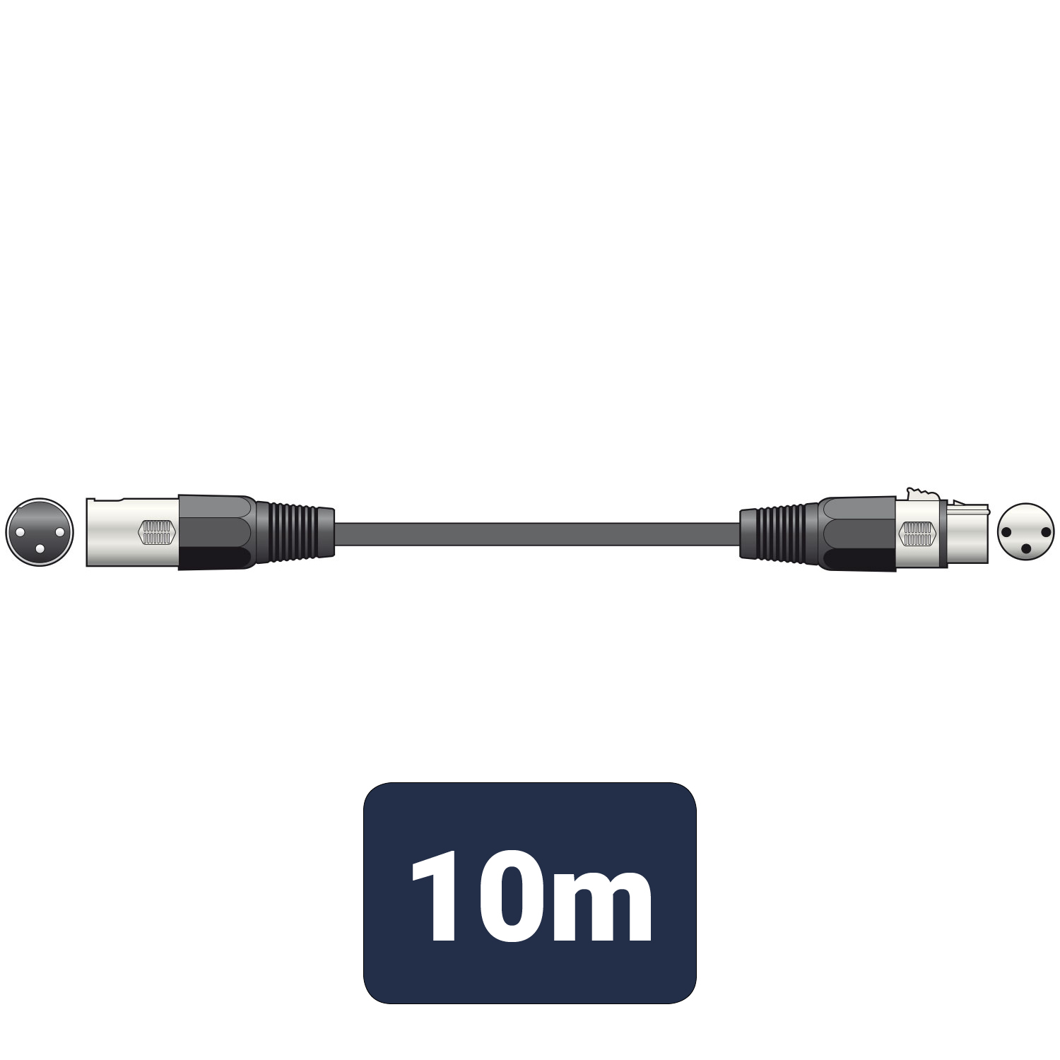 DMX lighting lead, 3-pin XLR plug to 3-pin XLR socket - 10.0m |