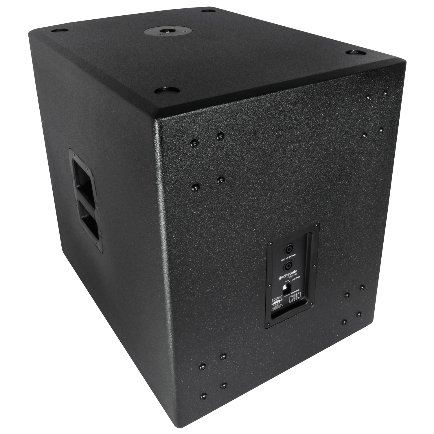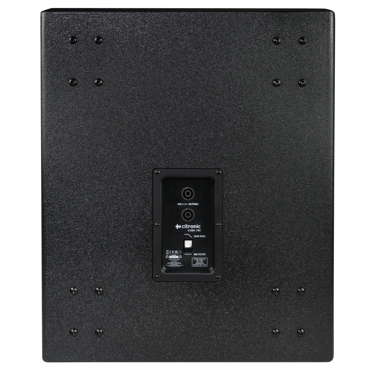 CUBA-series high power handling passive subwoofer cabinets. Each cabinet is constructed from 15mm MDF and coated in a durable textured polyurea material with a powder coated steel grille. Carrying handles are built into each side of the cabinet with a top mounted 35mm socket for pole mounting a top cabinet. A single high energy sub frequency driver delivers punchy and powerful sub frequencies. Well matched for systems comprising CUBA passive PA speakers or other high output full-range speakers.