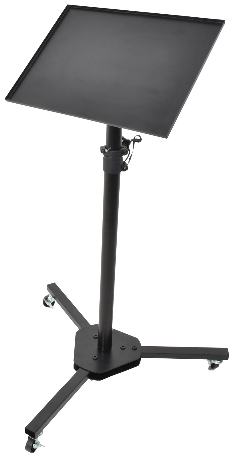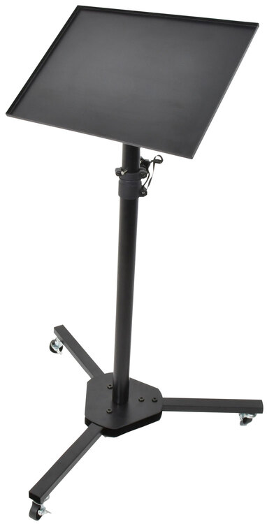 A robust and easy to move trolley ideal for providing a portable platform for your laptop or projector. Its height adjustable plate has raised edges to protect your device and the tripod style trolley base makes this stand exceptionally stable.