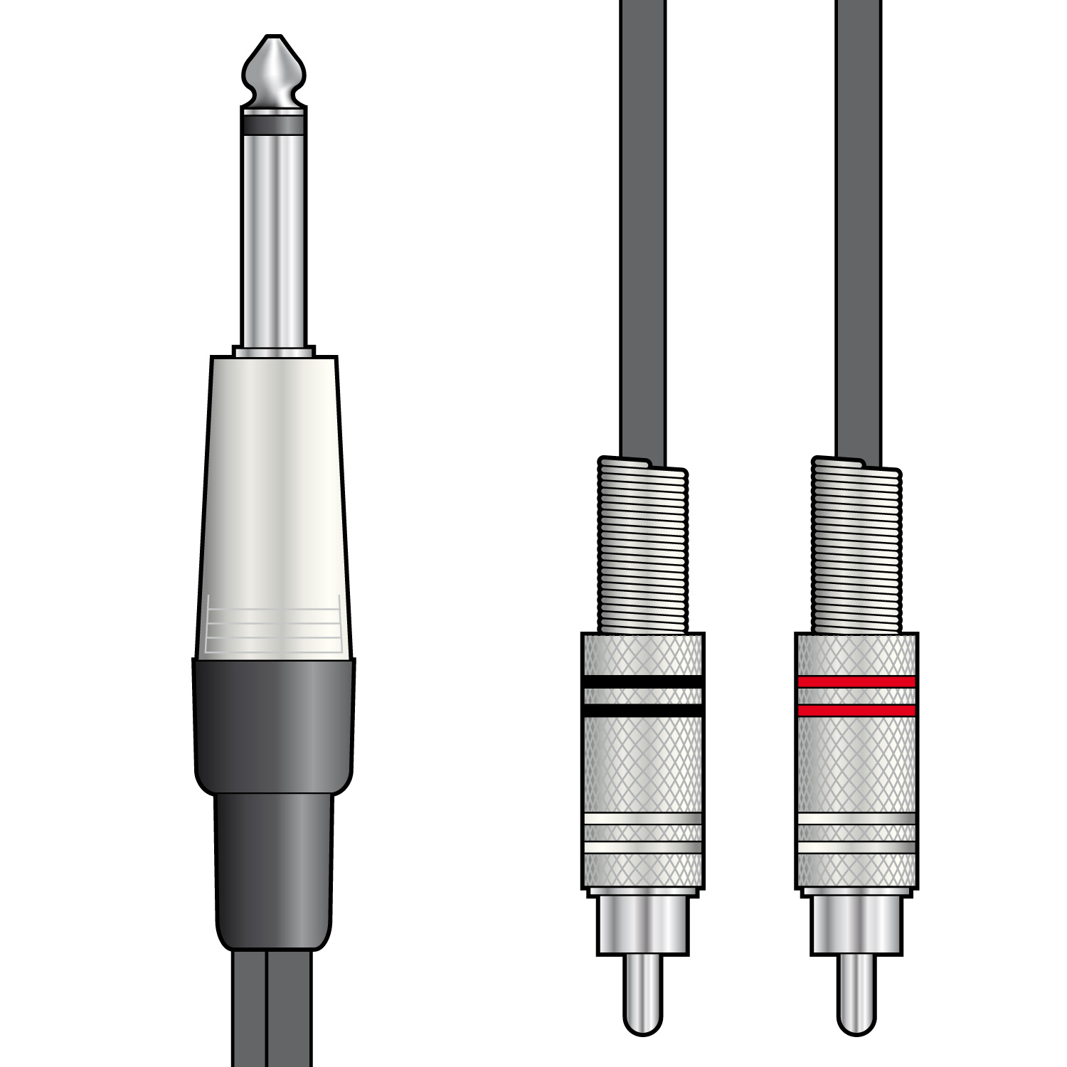 Classic Audio Leads 6.3mm Mono Jack Plug - 2 x RCA Plugs
