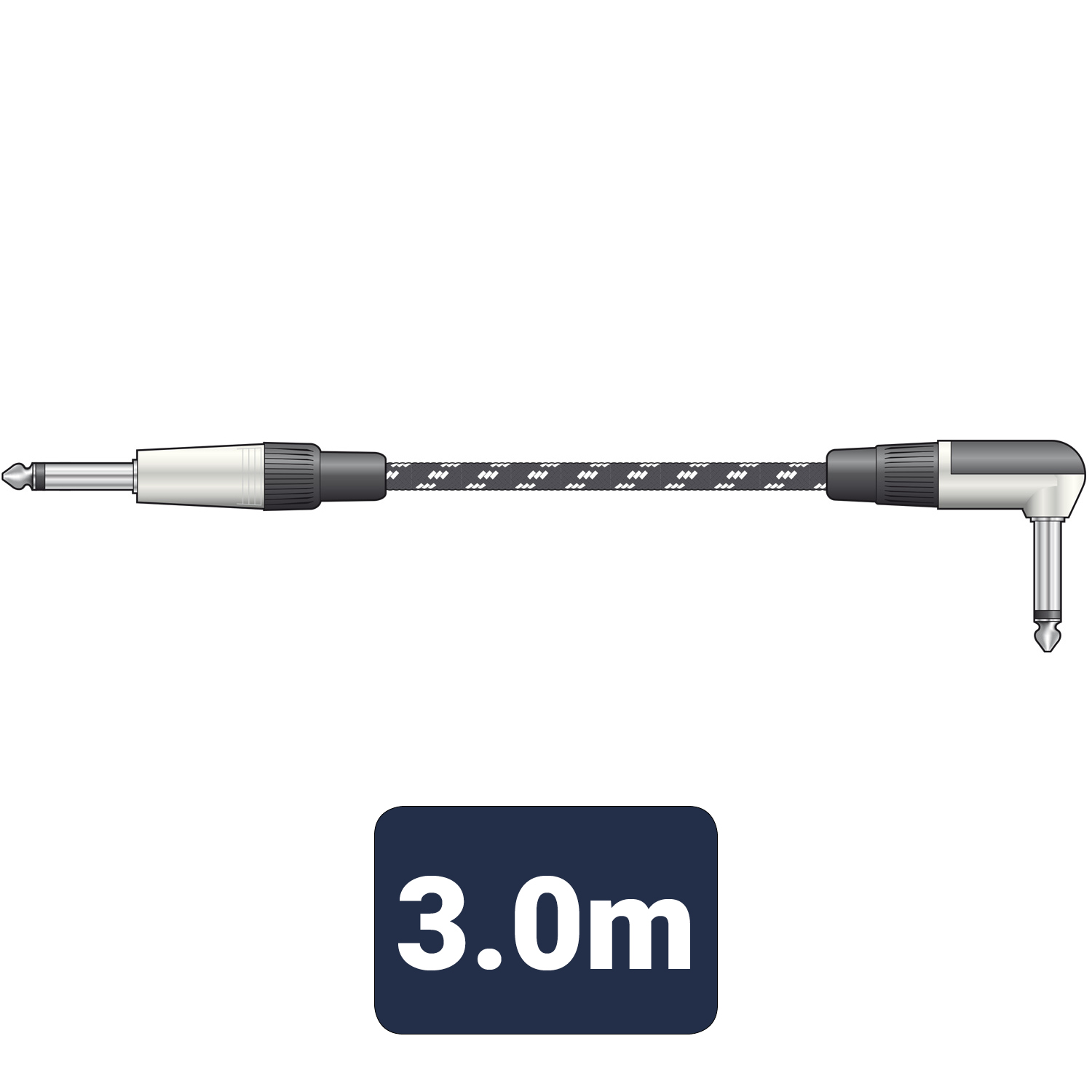 Classic Braided Right Angled Guitar Lead Black/White 3.0m |