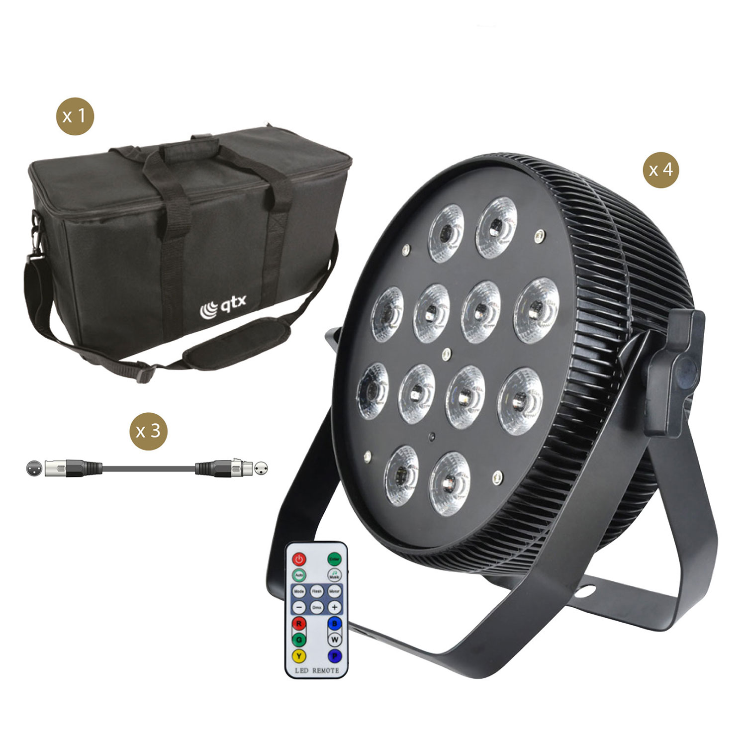 Citronic MagicPARs combine premium build quality with the latest technology to offer a truly silent PAR light range ideal for environments where noise is an issue such as places of worship and study. These fanless fixtures dissipate heat using a range of internal and external heatsinks and deliver bright and colourful washes using 12pcs of 12W RGBWA/UV LEDs. Easily control the unit's internal auto, sound activated and static programs via the control panel on the back, the included RF remote control or 6/10 channel DMX connection if preferred. The heavy duty metal chassis and stand/bracket offer strength and rigidity and the twist and lock power connections on the back, finish off the MagicPARs professional appearance and performance. This package consists of 4x MagicPar-80 units, 4x DMX leads and transit bag