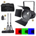 Ideal for applications where smooth, flat washes are required over shorter distances, this 160W Mini Fresnel stage light is fitted with four super bright and effective RGBW LEDs. Providing a controlled, flicker free beam with zoom angle adjustment from 30° to 58° which can also be shaped as required using the pre-fitted barn doors. Internal auto, sound activated and static programs can easily be controlled by the digital control panel on the back of the unit or by 4/8 channel DMX connection if desired. A heavy duty mounting bracket and twist and lock power connections complete the fixture's professional appearance. This package consists of 2x Mini Fresnel units, 2x stands and transit bag