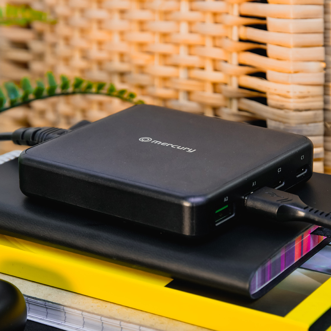GaN technology allows high power to be packed into a small device. Provides super fast charging to a wide range of devices including laptops, phones, smart watches, earphones and tablets that require a 65W charger. This charger features two USB-A ports and two USB-C ports so that you can charge multiple devices simultaneously.
