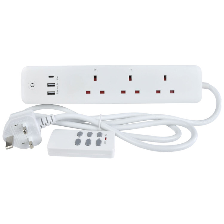 A 3 gang extension lead in which all sockets can be controlled individually via the remote control. A great solution for controlling appliances in inaccessible places, or for people with limited mobility. Ideal for TV appliances, games consoles and HI-Fi systems. Also includes 2 x USB A and 1 x USB C sockets for charging portable devices.