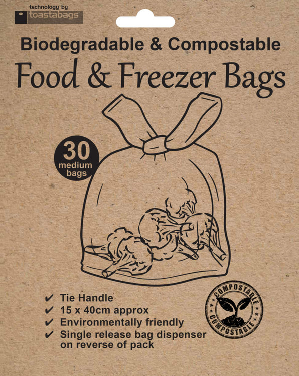 A pack of 30 eco-friendly food and freezer bags made from natural sources. The freezer bags are a convenient way to freeze and store food, whilst helping you to do your bit for the environment. The bags are 100% compostable for your home or council collection. This product is not suitable for microwaving.