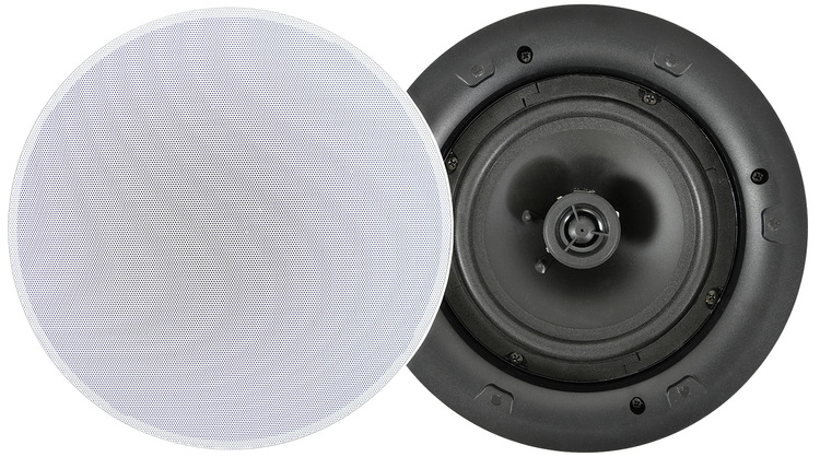 2-way ceiling speakers with flared baffle and a low profile magnetic grille. The main driver with concentric directional tweeter is operated via a rotary control with 5 x 100V volume tappings and an 8 Ohms option. Mount into suspended or false ceilings using the 4 "dog-ear" mounts to achieve a discreet, high quality sound installation.