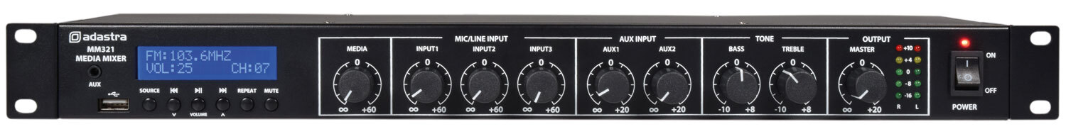- MM321 1U mixer with Bluetooth + USB/FM player