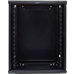 Cabinets for 19" rack-mount equipment with removable side panels and lockable front door. Constructed from cold-rolled steel with folded edges for strength and stability. Front and rear rack strip is supplied and mounted to rails inside the cabinet, enabling the mounting depth to be adjusted to accommodate equipment with overhanging fittings or to support the rear of heavy units. The top panel is vented for cooling and has a cut-out for mounting a cooling fan if required. The front door is removable and has a pane of 5mm tempered glass flanked by folded steel edge panels which can be mounted to open to either the left or right. The rear panel has fixing apertures for wall mounting or alternatively, the cabinet can be free-standing. Superbly designed, secure containment for professional rack installations.
