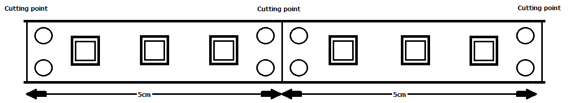 You may also reconnect the two pieces by soldering the connection points together (FIG 2). The tape has two tracks for the DC voltage with + positive pole at the top and – negative pole at the bottom.